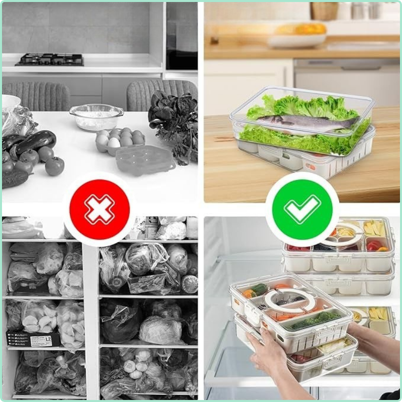 اجعل حياتك أسهل وأكثر ترتيبًا مع صندوق تخزين الطعام متعدد الأقسام!